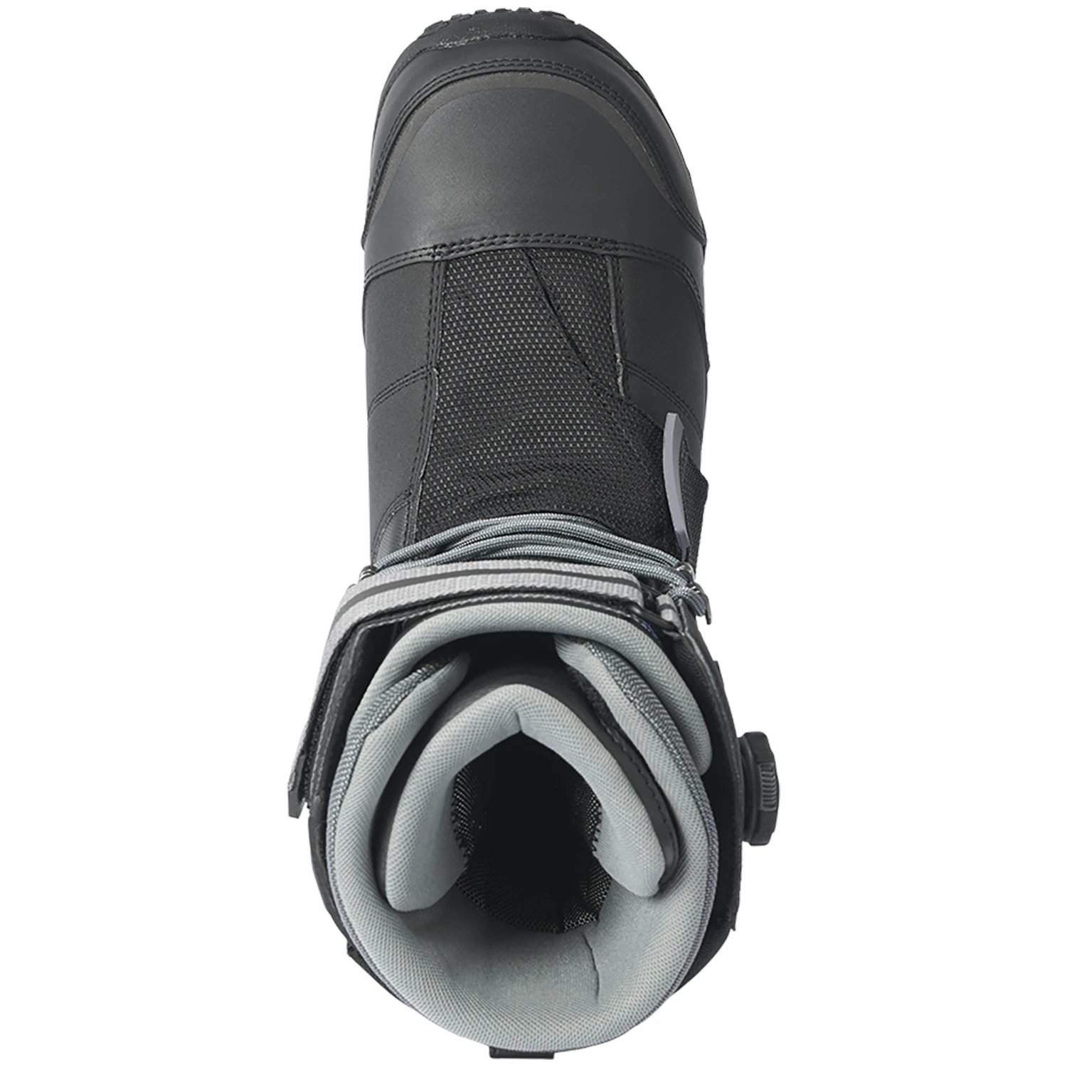 A cable and reel based lacing system that creates even tension and easy lacing operation. This system features low friction guides for even tightening. Boa® works to automatically retract lace slack so your boots stay nice and neat.