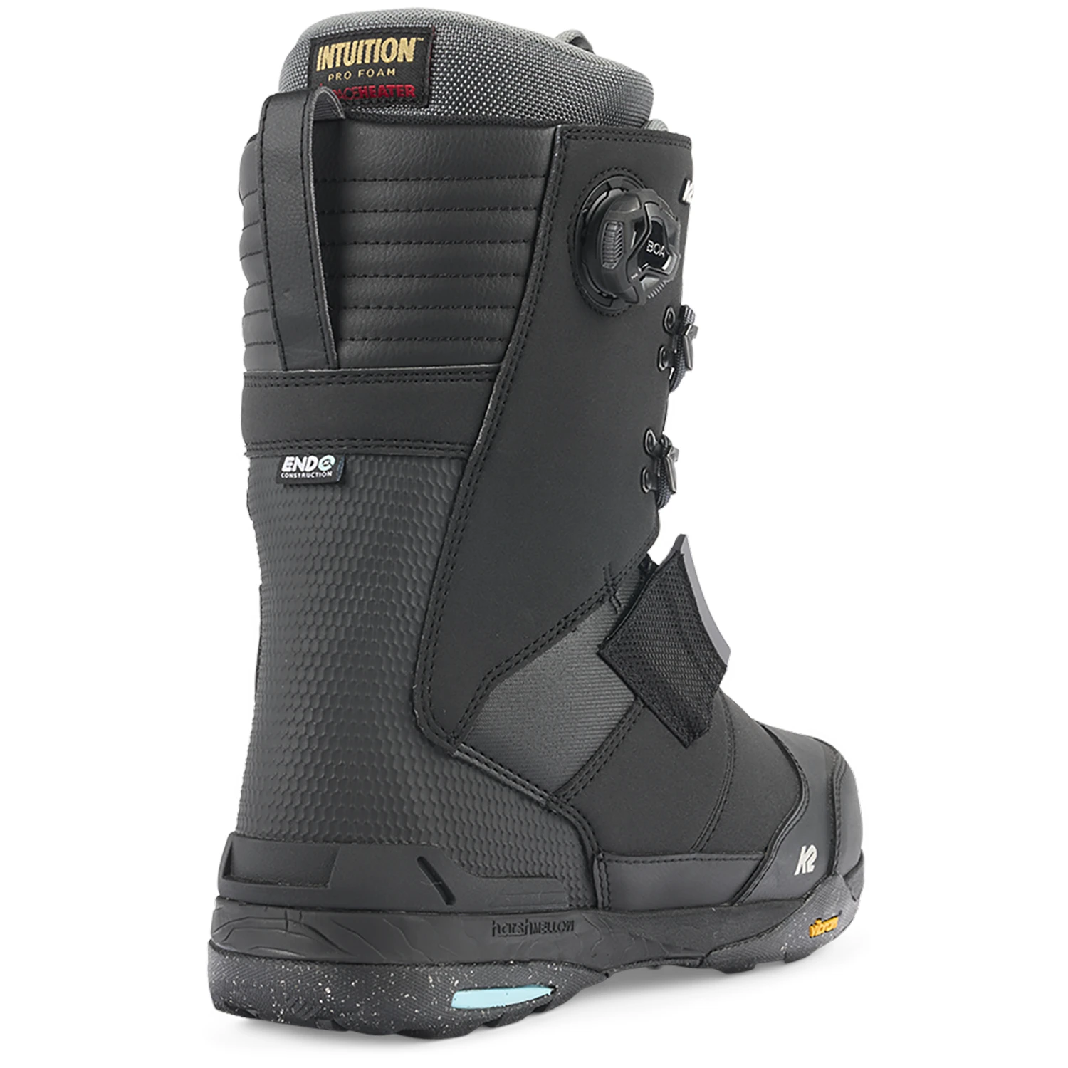 A K2 Snowboarding exclusive, Endo™ Construction allows the flex, response, and rebound of a snowboard boot to be altered without adding extra materials (extra materials = extra weight). By replacing additional materials with an injected heel-counter, adding extra rebound is as easy as a formula change and helps to provide a more consistent flexing, longer-lasting snowboard boot.